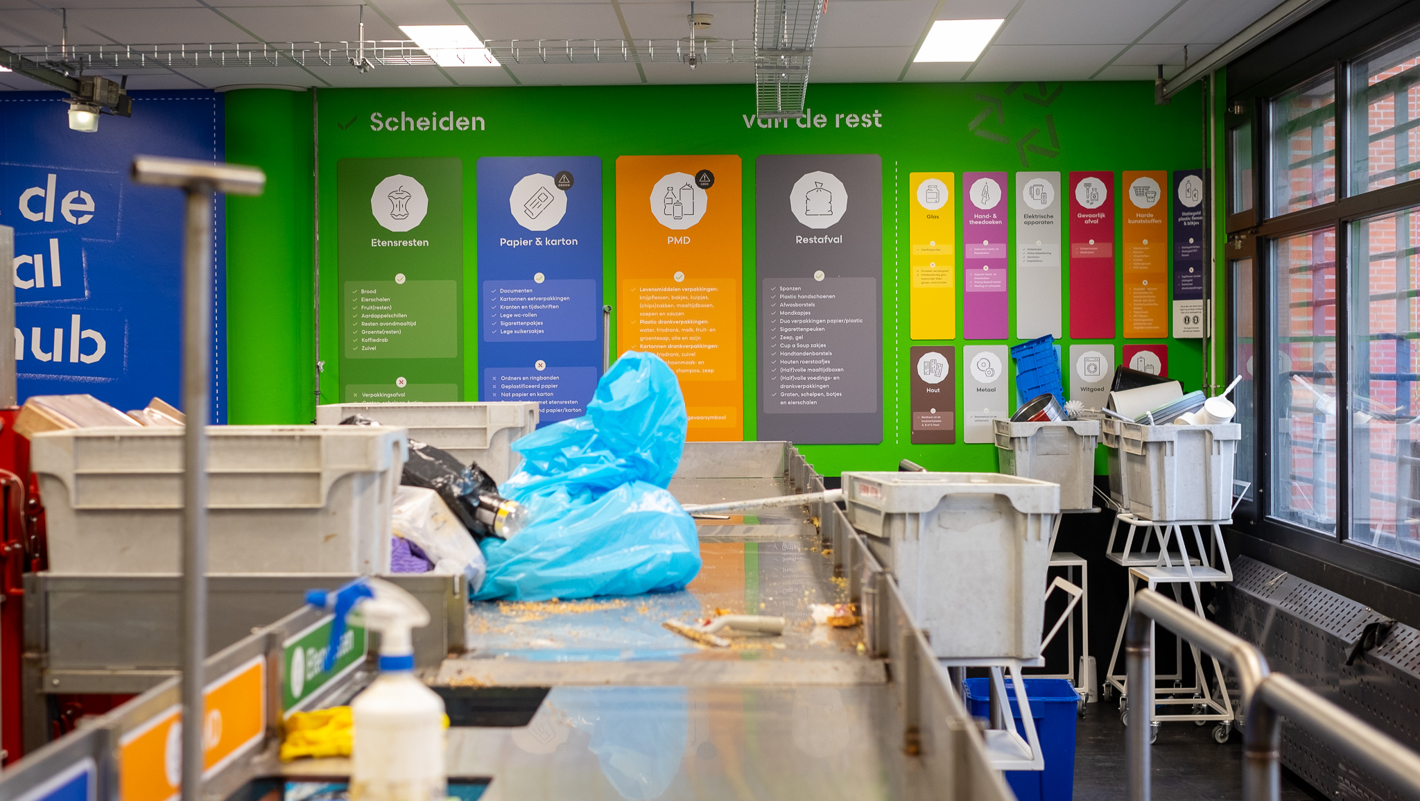 De Afvalhub is een gloednieuw, uniek en toonaangevend project binnen de Dienst Justitiële Inrichtingen (DJI), geïnitieerd door de afdeling Duurzaamheid en gestart in de Penitentiaire Inrichting in Dordrecht. Samen met de locatie (medewerkers en gedetineerden) zorgen we voor een betere scheiding van al het afval. Dat klinkt misschien niet bijzonder, maar dat is het in dit geval wel. Afvalscheiden in detentie is namelijk niet makkelijk. Al jaren is circa 80% van het afval restafval. Daarom proberen we iets nieuws: nascheiden. Dagelijks worden alle afvalcontainers van de volledige inrichting verzameld in een werkzaal. Daar worden de containers geleegd en wordt het afval zorgvuldig uitgesorteerd met de inzet van gedetineerden, met als doel de hoeveelheid restafval tot een minimum te beperken.